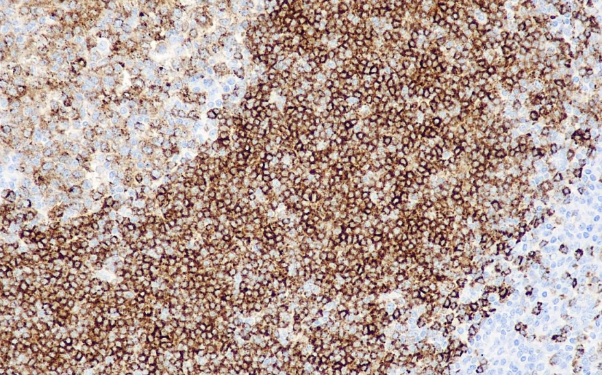 The CD22 antigen molecule is a transmembrane protein with a relative molecular mass of 135k and is a B lymphocyte-restricted antigen. In B cells and pre-B cells, CD22 antigen is present only in the cytoplasm, and is expressed on the cell membrane upon differentiation to mature B cells, with increased expression upon activation.CD22 antigen disappears when B cells differentiate to terminal stage plasma cells.CD22 is an adhesion molecule and is widely expressed in both normal B cells and B-cell lymphoma cells.Strong positivity is seen in hairy cell leukemia and its subtypes, weak positivity in chronic lymphocytic leukemia is weakly positive, and cytoplasmic positivity in some B-lymphoblastic leukemias is considered to be cell lineage specific. Literature indicates that CD22 is strongly expressed as CD22 antigen in diffuse large B-cell lymphoma and nodular lymphocyte predominant Hodgkin's lymphoma, weakly expressed as CD22 antigen in follicular lymphoma, and not in classic Hodgkin's lymphoma. In recent years, CD22 has become a therapeutic target for autoimmune diseases and B-cell malignancies, and one of the more well-established research is the humanized antibody Epratuzumab. Epratuzumab is a humanized antibody that is used to assist in the diagnosis and differential diagnosis of B-cell lymphomas.