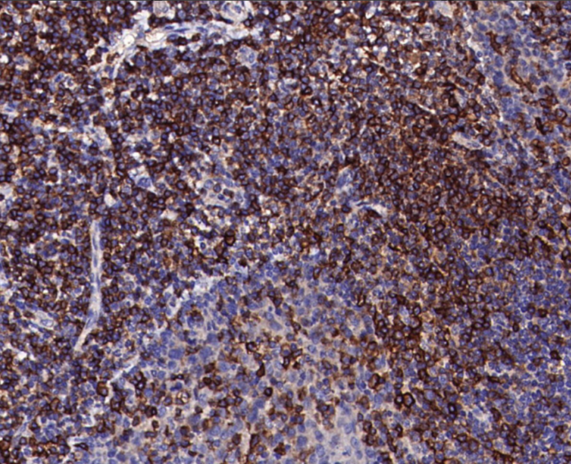 In some lymphohematopoietic tumors, the expression of CD27 is helpful in determining the origin of the tumor cells. In the differentiation between Hodgkin's lymphoma and non-Hodgkin's lymphoma, tumor cells of classical Hodgkin's lymphoma usually do not express CD27, while some types of non-Hodgkin's lymphoma, such as diffuse large B-cell lymphoma, may express CD27.In addition, in T-cell lymphomas, the expression of CD27 varies among different subtypes, which can help to further subdividing the tumor types and provide a basis for accurate diagnosis and treatment. The results will help to further classify tumor types and provide a basis for precise diagnosis and treatment.