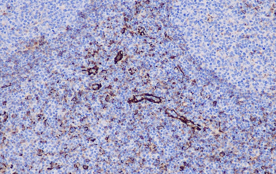 CD31 antigen (PECAM-1) is a 140 kD cell membrane surface single chain glycoprotein expressed mainly in platelets, monocytes, granulocytes, B-lymphocytes and endothelial cells. This antibody is mainly used for the diagnosis and differential diagnosis of benign/malignant tumors of vascular origin and the study of angiogenic status in the mesenchyme of various tumors.