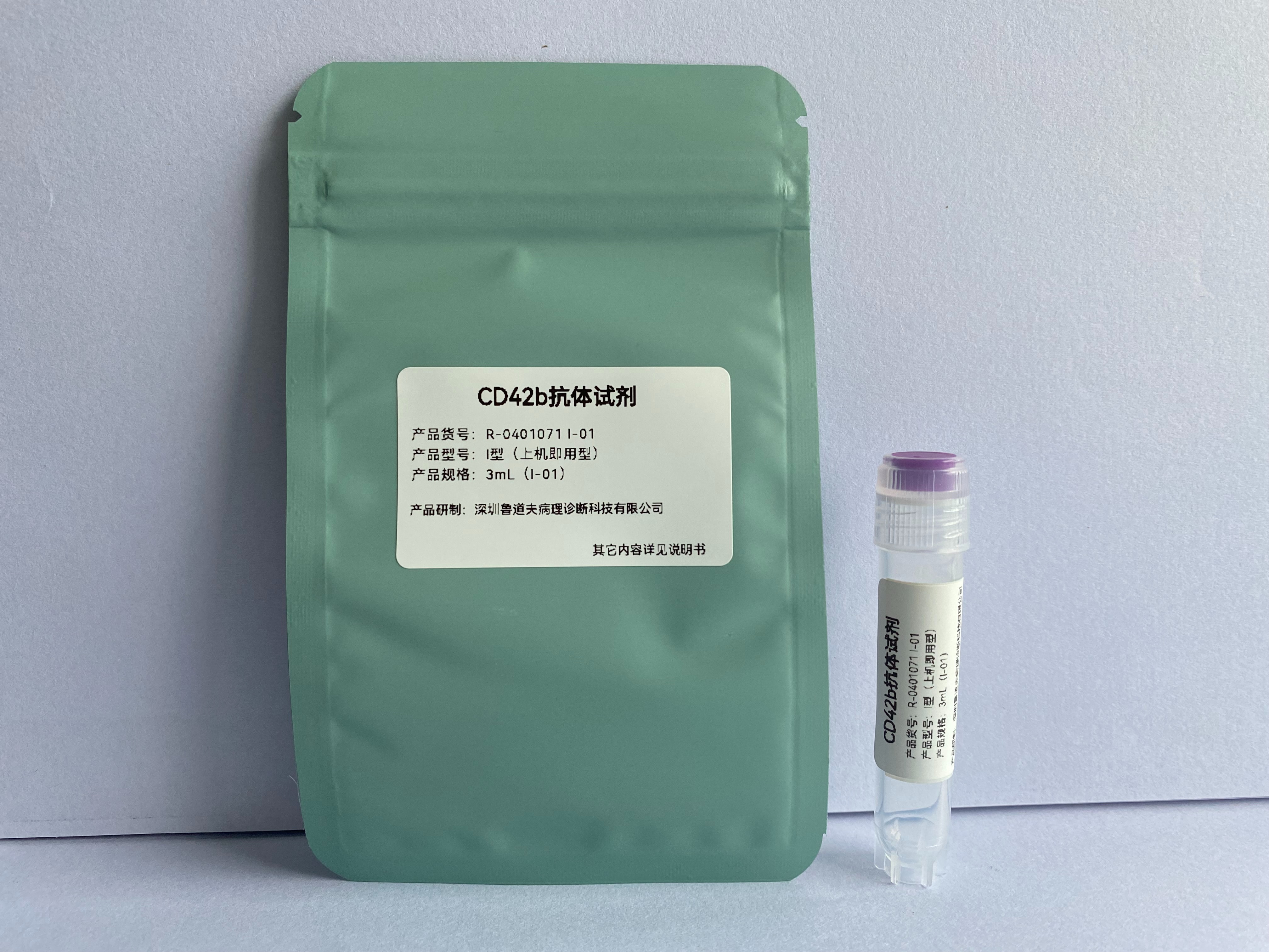 CD42b Antibody Reagent binds specifically to CD42b molecular antigen. Immunohistochemistry kits containing CD42b Antibody Reagent are indicated for the precise diagnosis of immune thrombocytopenia (ITP), myelodysplastic syndromes (MDS), and megakaryocytic leukemia.