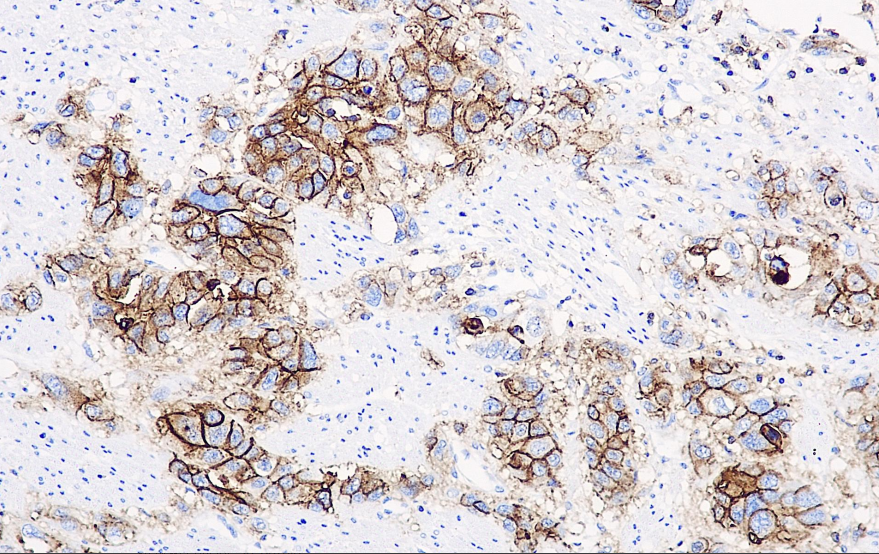 CD44 is a member of the glycoprotein family contains several isoforms, of which the common standard or hematopoietic isoforms (CD44s), with a molecular weight of 85-95 kD, are found in mesodermal tissues such as hematopoietic cells, fibroblasts, neuroglia, and some cancer cell lines. The high molecular weight isoform (CD44v) is found in epithelial cells and plays an important role in intercellular adhesion and matrix junctions. The functions and distribution of other CD44 family proteins have not been fully elucidated, but it is clear that CD44 family proteins play a role in embryonic development, angiogenesis, cell-specific adhesion, signaling, and cell migration. Recent studies have shown a correlation between CD44 expression and the nuclear proliferation antigen Ki-67, and the expression of CD44 in adenomatous polyps, colon cancer, and proximal mucosa suggests that it is involved in the stimulation of cell proliferation.Complexes of CD44v and hyaluronan are essential during tumor invasion, and the associated receptor binds to the complexes, subsequently degrading the hyaluronan.CD44v is expressed in proliferative form in a number of tumors and is It is involved in the process of tumor progression and dedifferentiation, including non-Hodgkin's lymphoma, hepatocellular carcinoma, breast cancer, renal cell carcinoma, colon cancer, malignant melanoma, prostate cancer, gastric cancer, and some soft tissue tumors. In contrast, expression is decreased in adult neuroblastoma, squamous skin cancer and basal cell carcinoma. Currently, immunohistochemical detection of CD44 is commonly used to distinguish urothelial migratory cell carcinoma in situ from benign uroepithelial lesions.
